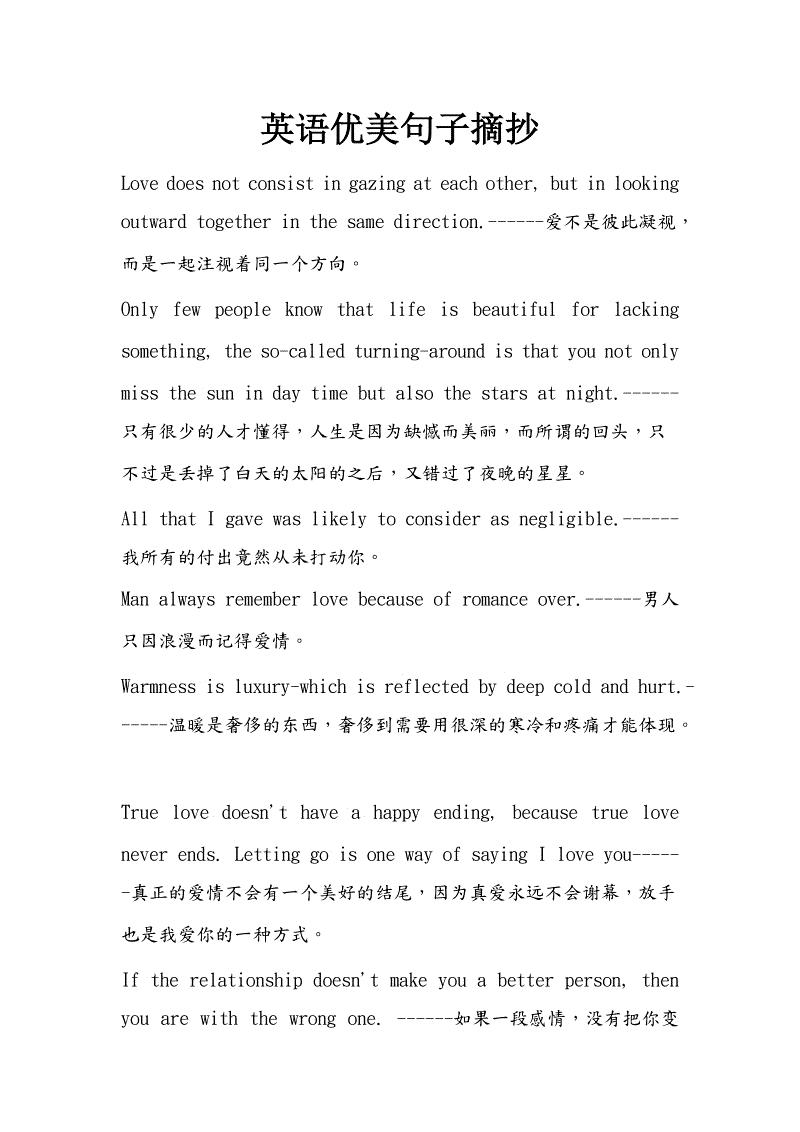 精心整理了300条优美的句子相信这些经典的优美句子会带给大家很多阅读乐趣大家可以选择一些喜欢的优美语句摘抄分享到自己的空间里哦 1越。优美句子摘抄大全 提供好词好句,下面给大家介绍下优美句子摘抄大全,希望可以帮到您哦 1 走过春的田野,趟过夏的激流,来到秋天就是安静祥和的世界。优美句子 摘抄 大全 1彼岸的烟花终于凋零,圣殿的神火奄奄一息,我看见你孩童般的笑容,你问,天堂塌陷的时候,我们的罪行是否终被宽恕 2寂寞是这样。
