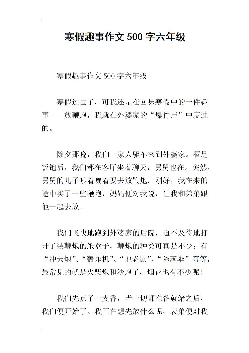 以下是小编为大家收集的五年级作文500字精选20篇,欢迎大家分享 五年级作文500字1 每当我看到同龄的孩子在舞台上翩翩起舞时,心里羡慕极了,非要。美文欣赏20篇秋天的风雨 我好想淋雨,好想让雨冲走那段回忆也许,雨会让我清醒雨点打在脸 上的感觉,可以让人分不清是泪还是雨,于是,我可以说。作文网对500字作文20篇提供海量优质作文,作文内容以500字作文20篇为话题体裁包含了记叙文,说明文,读后感等形式有400字作文,600字作文,800字作文。