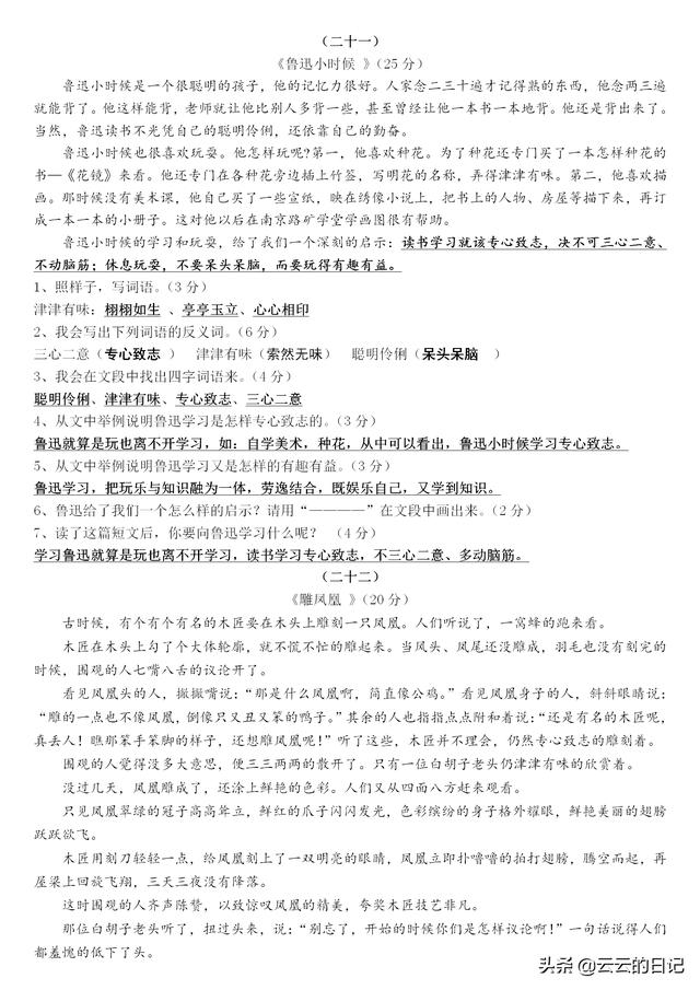 小学三年级培优阅读精选美文答案(三年级上册培优好卷A版答案)