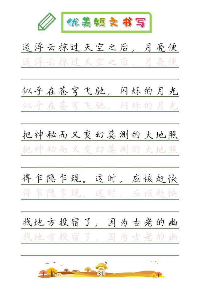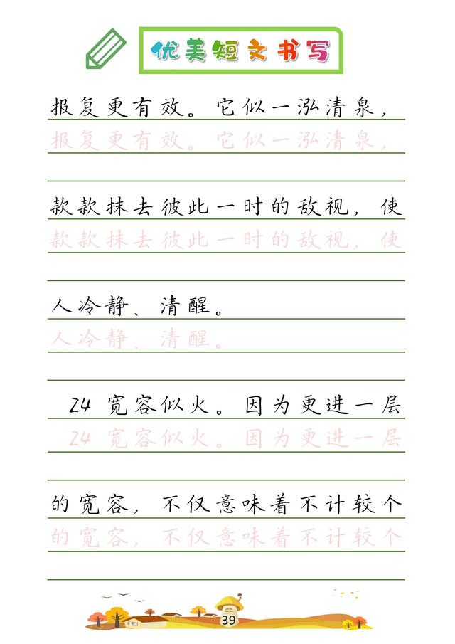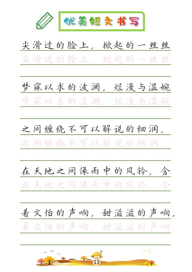 (收藏版)32篇优美短文摘抄,共52页!高清硬笔字帖