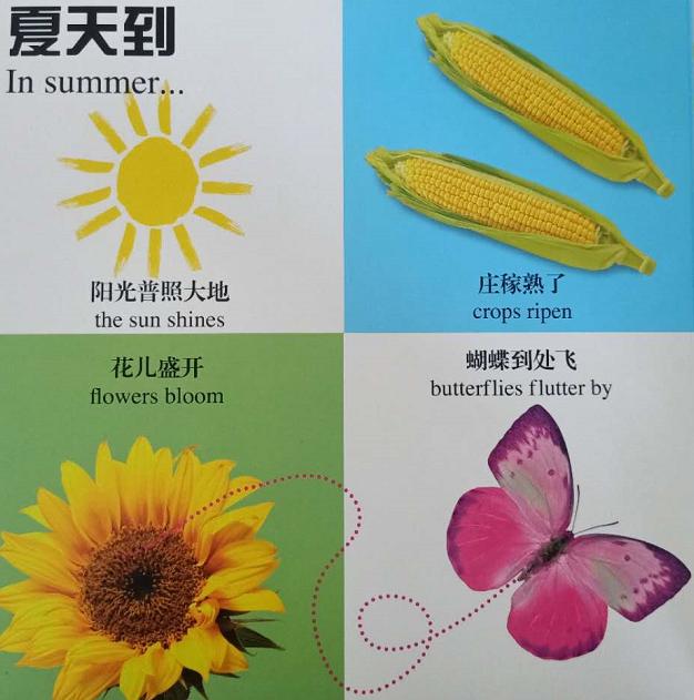 “对呀,春天和夏天都有花开,也都有蝴蝶,你看,夏天还有小蜜蜂呢!”
