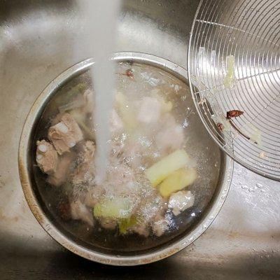 5、捞出的排骨过用凉水冲洗干净,拣出里面的葱姜八角,控干水份