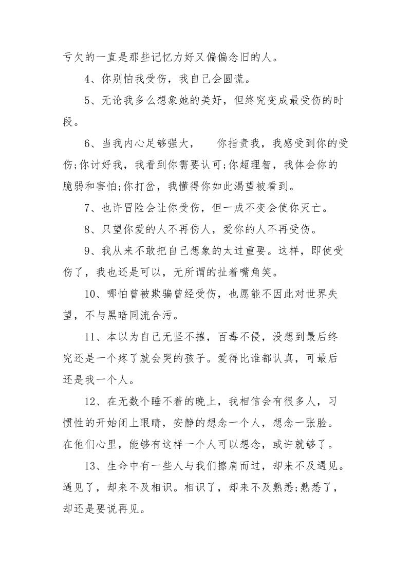 1当我们习惯隐身,习惯沉默,原来是为了躲避失望2有没有一个人,可以看透我的逞强,在乎我的忧伤3与其在别人的戏里跑龙套,不如拍好自己导演的戏4最难受的思念,不是对方不。