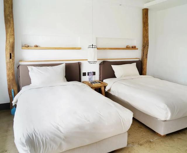 秉承着“融入自然、舒适简约”的风格,设计师自主设计房间家具,最大限度地就地取材,由当地传统工匠手工加工制成,让现代的家具与自然完美融合。